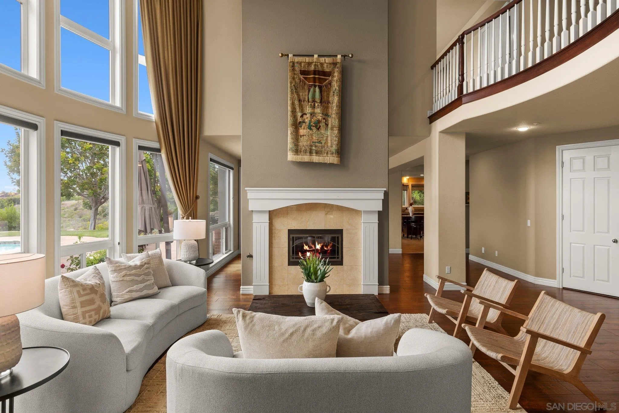 Stunning and serene, this two-acre estate is nestled at the end of a private cul-de-sac in Knightsbridge Country Estates, one of Olivenhain’s premier gated communities. With sweeping southwest views, this 5,500+ sq ft home showcases quiet luxury with timeless design, classic architecture, and flexible living spaces. A dramatic dual staircase entry opens to a light-filled living room with expansive windows. The main level includes a guest suite with private entrance, formal living and dining rooms, a family room, and a custom wine room. The gourmet kitchen features stainless steel appliances, a large island, and a butler’s pantry. Upstairs offers a view-filled primary suite with balcony and dual-sided bath, plus three bedrooms and a bonus room. Resort-style amenities include a pool, two detached studios, an oversized four-car garage, owned solar, and full city services.