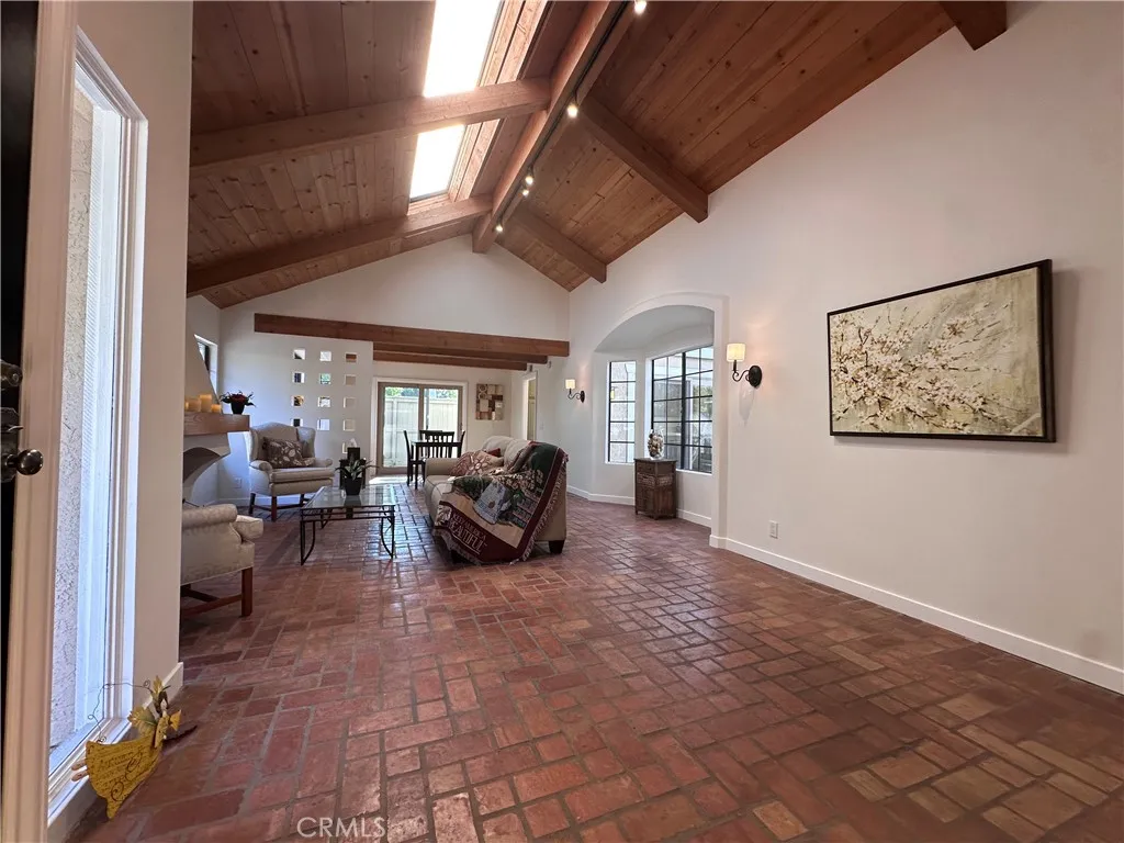 OFFERS DUE TUESDAY 10/14 8AM. In the heart of Irvines famed Woodbridge community, in the boutique neighborhood known as The Grove, and with a backyard gate that opens directly to Ashford Park (with its pool, spas, sport courts, play equipment, and green space) is this SINGLE STORY end-unit home that combines convenience, privacy, and character. Inside, this isnt a cookie-cutter tract house! Architectural details set it apart from arched passageways and plank-and-beam ceilings, to a distinctive fireplace with warm wood accents and low-maintenance brick paver flooring playfully sprinkled with colorful tile inlays. Natural light pours in through skylights, while a wraparound yard designed to feel like an atrium is visible from the living room, kitchen, and primary suite. The result is a super private outdoor retreat that brings the beauty of the outdoors in, perfect for entertaining or simply relaxing at home. The primary bedroom has an ensuite, freshly remodeled bath featuring dual vanities, quartz counters, and brand-new cabinetry as well as a huge walk-in closet. The secondary bath was updated with the same finishes for a consistent, stylish look. A versatile den space offers an ideal extra area, which could function as a home office, fitness or reading room, or enclose it into a true third bedroom. Fresh paint and new bedroom carpet give the home a bright, welcoming feel right away, while a direct-access 2-car garage and gated front courtyard add everyday convenience and security. As part of Woodbridge, residents enjoy access to two landmark lakes, over 20 pools and spa