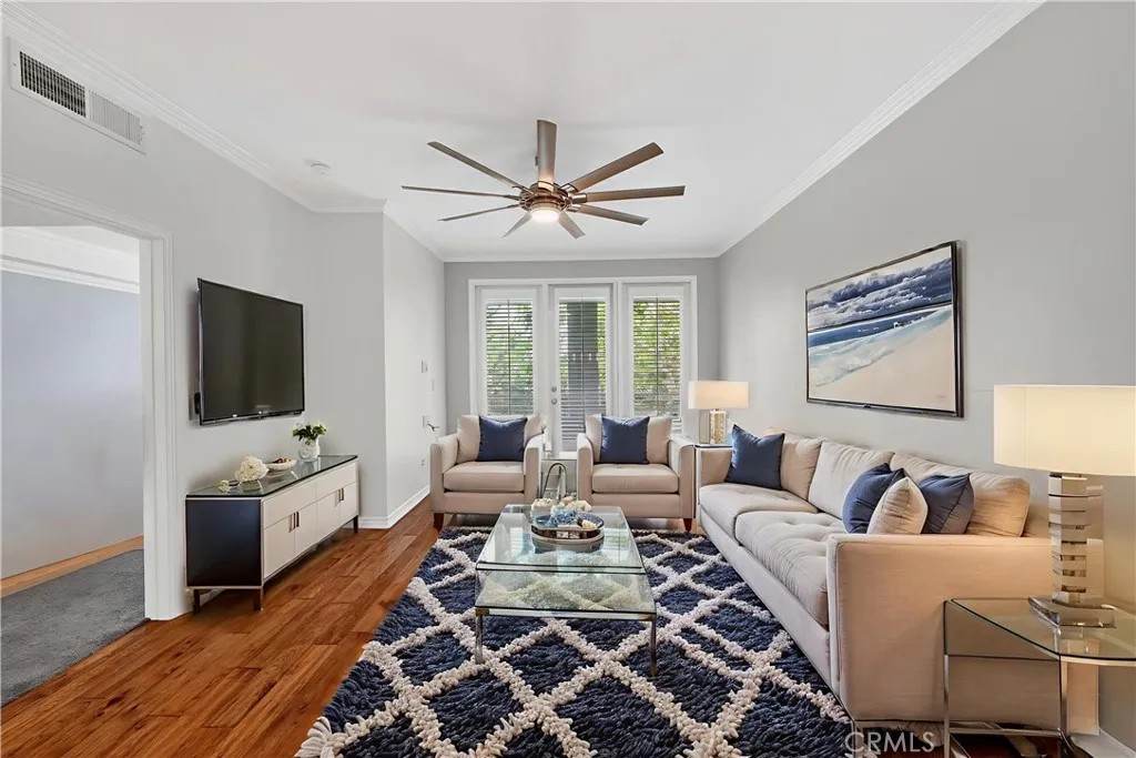 UPGRADES***UPGRADES**FIRST FLOOR**1 BED WITH ADDITIONAL OFFICE WITH CUSTOM CLOSET CABINETS SO CAN BE CONVERTED TO A 2 BED or REMAIN OFFICE*Experience luxury living in one of the safest places to live in Irvine! Welcome to 2243 Martin, Unit 107, located in the highly desirable Metropolitan community, just a short walk to John Wayne Airport. This stunning end-unit condo offers privacy with only one shared wall and an open layout designed for modern living. Inside, youll find upgraded quartz countertops in both the kitchen and bathroom, custom Elfa shelving in the den/office or turn into 2nd bedroom, elegant crown molding, and a designer bedroom chandelier. The spacious den features custom 10-ft closet doors with extra storage, while the home is enhanced with motorized LED lighting with remotes and plantation shutters throughout and NEST thermostat. The Garage is parking step away from stairs and elevator Relax on your private balcony overlooking the tranquil greenbelt or enjoy the resort-style amenities at The Metropolitan: a sparkling heated pool, spa, fitness center, elegant clubhouse, and lush landscaped grounds perfect for an evening stroll. The community also offers 24/7 gated security, underground parking, and HOA coverage of water, gas, and trash for peace of mind. Nestled in the heart of Irvine, youll be minutes from top-rated parks, recreation, world-class shopping, dining, and beaches. Dont miss the chance to own this beautifully upgraded home in one of Irvines most sought-after communities!