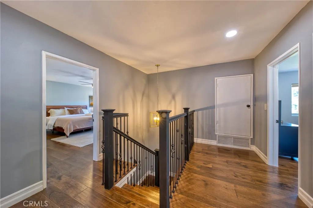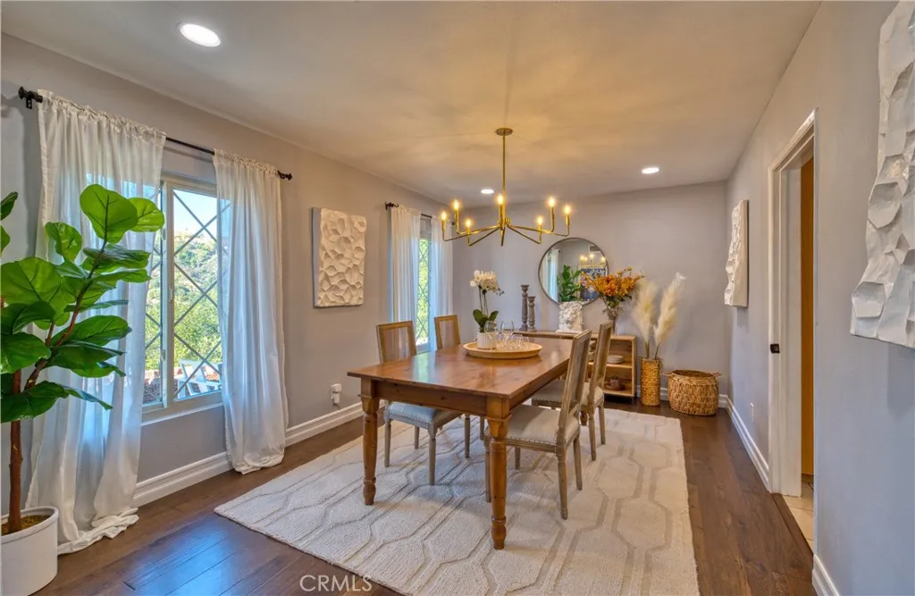 Presenting a single-family residence offering an elevated living experience, perfectly perched in the hills of Glendale. This two-level home is privately sited on a secluded cul-de-sac and affords gorgeous, panoramic views encompassing the golf course and sparkling city lights. The main level boasts a spacious living room highlighted by vaulted ceilings and an inviting fireplace, creating an atmosphere of sophistication and comfort. Adjacent is the formal dining room, featuring direct access to the private backyard, ideal for seamless indoor-outdoor entertaining. The kitchen is appointed with ample cabinetry and a dedicated breakfast area. The upper level is dedicated to the sleeping quarters, headlined by the primary bedroom suite, which includes a walk-in closets and an ensuite bathroom with convenient dual sink vanities. This floor also houses two additional well-sized bedrooms and a shared full bathroom. Further enhancing the property's appeal are essential modern amenities, including central air and heat and an internal laundry room. The home's exterior has been freshly painted. The outdoor space is a true highlight, providing multiple entertainment options on the property, all while enjoying the picturesque vantage point overlooking the golf course. This residence offers a rare combination of privacy, views, and functional living space in a premier Glendale location.