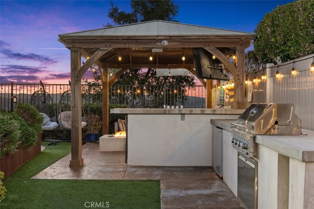 WOW! RATES HAVE DROPPED! PANORAMIC SUNSET VIEWS! SPACIOUS LAYOUT! DOWNSTAIRS ENSUITE! Located in the highly desirable Arrowood Community, this stunning 4-bedroom, 3.5-bath home offers 3,080 sq. ft. of beautifully designed living space with breathtaking westerly hilltop views. The open-concept kitchen features quartz countertops, a large center island with bar seating, stainless steel appliances, and rich dark wood cabinetry, all complemented by engineered hardwood floors downstairs. It flows seamlessly into a spacious family room with a cozy fireplace and a large dining room, perfect for gatherings and entertaining. A first-floor ensuite bedroom provides flexibility for guests or multigenerational living. Upstairs, the spacious primary suite offers a private balcony, walk-in closet, soaking tub, separate shower, and dual vanities. The upper-level also features luxury vinyl plank flooring, two additional well-appointed bedrooms with walk-in closets and a Jack and Jill bathroom, a spacious family room, a dedicated office, and a convenient upstairs laundry room. Step outside to your entertainers backyard, featuring artificial grass, a gazebo, fire pit, BBQ grill, and a bar area with refrigerator and sinkall framed by unobstructed panoramic sunset views. The home also includes a 3-car garage, Vinyl Fencing, and Solar panels providing energy efficiency and cost savings. Residents of Arrowood enjoy resort-style amenities, including a Jr. Olympic-sized pool, clubhouse, walking trails, and community parks. Golf enthusiasts will love the nearby Arrowood Golf Course, one of North Cou