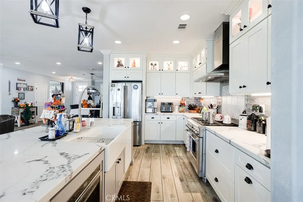***See Our Amazing Virtual Tour***See Supplements for all the upgrades done!***Rare Find in Eagle Glen Elegant Single-Story Retreat! Discover this exceptional single-story treasure in Coronas prestigious Eagle Glen community. Offering approx. 2,617 sq. ft. of customized living space, this 4-bedroom, 2.5-bath home rests on an expansive 13,000+ sq. ft. lota perfect blend of sophistication, comfort, and contemporary design. From the moment you arrive, the drought-tolerant landscaping and impressive three-car garage with upgraded dual doors set the stage for what lies within. Step inside to an open-concept floor plan that radiates luxury and warmth. The formal living room welcomes guests in style, while the designer kitchen shines with high-end cabinetry, quartz countertops, a large center island with seating, and a pantry accented by a sliding barn door. Overlooking the family room, the kitchen flows into a space highlighted by custom built-ins and a cozy fireplacecreating the perfect setting for entertaining or relaxing. A flexible room currently used as an office or gym is separated by a modern barn door, offering both versatility and privacy. On one wing, youll find three spacious bedrooms, an upgraded full bath with dual sinks and quartz counters, plus a stylish laundry room and guest powder bath. The privately situated primary suite serves as a peaceful retreat. French doors open to the serene backyard, while the luxurious en suite bath features a massive walk-in doorless shower, quartz counters, and spa-quality finishes. Throughout the home, rich tile flooring, upgraded