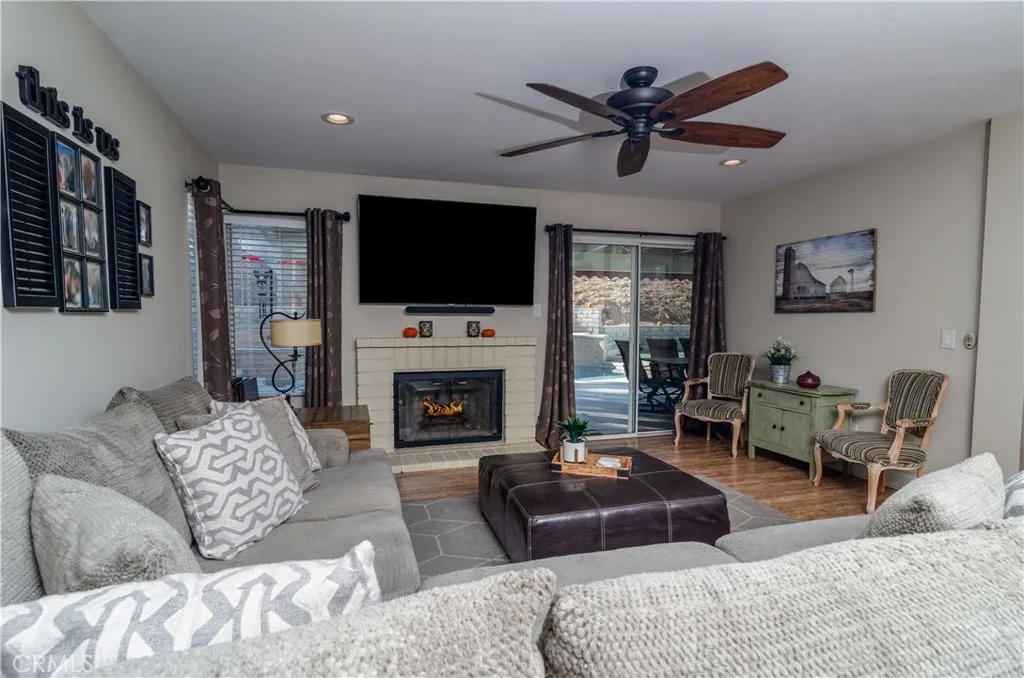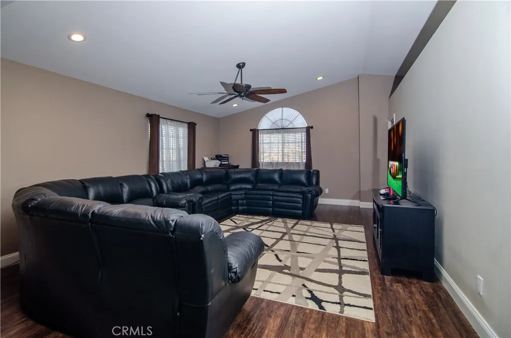 Back on the Market! Motivated sellers! Previous buyers did not perform! Spacious 4 bedroom + 3 baths + loft, Pool home with paid SOLAR and park quality 1/2 size basketball court! This well cared for home offers fantastic curb appeal with stone slate hardscape, beautiful faux wood garage doors, and gate with side yard room for your outdoor toys or RV. The front yard is expansive and low maintenance with vibrant turf situated on a cul-de-sac street. The double door entry welcomes you inside to a cathedral ceiling, plantation shutters, laminate wood flooring throughout with open living, dining, and family areas all open to the kitchen with countertop bar seating, laundry room, direct garage access, and a downstairs bedroom with an upgraded 3/4 bathroom (step-in shower). The stainless steel appliances stay with the kitchen as does the backyard patio furniture, including 2 umbrellas with lights, the downstairs washer / dryer set in the laundry room, and the storage cabinets in the garage. The kitchen opens to a cozy family room with gas fireplace. There are 2 NEST thermostats, 1 upstairs and 1 downstairs. The loft upstairs is great for movie nights, exercise area / relaxation space, or office. A sectional couch is included in the price of the home. Ceiling fans are in all bedrooms and family room and loft. The primary upstairs bedroom ensuite bathroom is updated as is the jack n jill bathroom between bedrooms 3 and 4. The HVAC was replaced in 2016/17. Enjoy your entertainer's backyard year round with the covered patio with built-in awnings stretching to the water's edge, sparkli