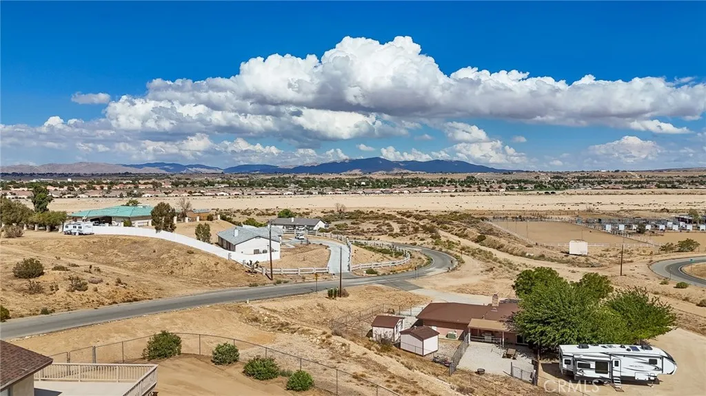 Boasting expansive, unobstructed views of the Mojave River and Marianna Mountains, stretching toward Big Bear, this 2,384 sq ft, Tri-level home is a haven for those seeking tranquility and natural beauty, in a convenient location. Set on nearly an acre, the freshly painted 3 bedroom, 2.5 bath custom home features many classic design elements, including beautiful exposed beams, a brick hearth with wood-burning stove, a gorgeous stone fireplace, and a floor plan that maximizes space and functionality. "Flex" Room off of family room/kitchen has endless possibilities, such as, 4th bedroom, office, music, exercise, sun room, etc! Dramatic, oversized bay windows frame the breathtaking views and flood the home with natural light. Outside, enjoy two large decks, plus a front balcony off of the Master bedroom, and a rear covered patio perfect for relaxing or entertaining. A large circular driveway leads to a detached RV garage with a side glass slider and overhead door, with ample space for a boat, RV, cars, or a workshop. This oversized garage is a dream for hobbyists, complete with extensive shelving. Horses are invited too! This property is zoned for up to 3 horses, as it's a perfect location to go on relaxing rides along the riverbed! Located approximately 3 minutes from Bear Valley, and just minutes from the vibrant Jess Ranch Shopping Center, youll have easy access to excellent restaurants, a movie theater, home improvement stores, grocery stores, and more. Located at the end of a very low-traffic street, this home combines the best of secluded country living with modern conve
