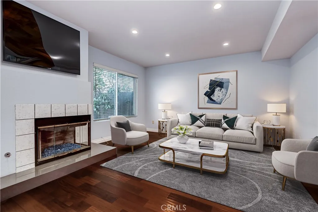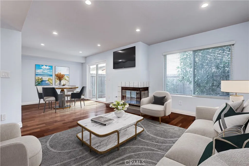 Turnkey remodeled 3-bedroom, 2.5-bath with Recessed lighting throughout, townhome in a desirable gated Gardena community. The home features a bright, welcoming layout with a spacious living and family area downstairs, complete with beautiful flooring and a cozy gas fireplace. A skylight over the stairs fills the space with natural light, and high vaulted ceilings upstairs create an open, airy feel. Large sliding doors open to a private backyard, perfect for relaxing, entertaining, or picking lemons from your own tree. The interior location ensures peace and quiet, away from street noise. The remodeled kitchen boasts modern white cabinetry, quartz countertops, and stainless-steel appliances, including a dishwasher. A convenient half bath is located on the main level, along with direct access to the attached two-car garage, which features built-in storage cabinets and an upgraded electrical panel. All bedrooms are located upstairs, with the laundry area nearby for convenience. The primary suite offers two walk-in closets with custom shelving and a beautifully remodeled bathroom with dual sinks, a tub/shower combo, and a separate vanity area. All bathrooms have been tastefully updated. Additional highlights include air conditioning for hot days, an upgraded electrical panel, and a gated community with a sparkling pool. Nothing to do but move in!