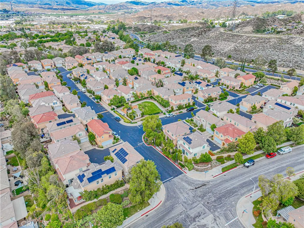 Welcome Home! Featuring a stunning Montevista home situated in one of the most desirable newer communities in Valencia. With an open floor plan that seamlessly connects the living spaces, making it perfect for both daily living and entertaining, you do not want to miss this one! Home features three bedrooms and two and half baths, upgraded laminate wood flooring, window treatments, fresh paint throughout, mirrored closet doors in all three bedrooms, upstairs laundry and attached two car garage. Enjoy cozy evenings by the fireplace with custom mantel and built in media niche in the living/family room. The chef's kitchen is equipped with top of the line newer stainless steel appliances, ample cabinet space including large pantry, kitchen nook and sliding doors out a low maintenance, cozy patio. Light and bright formal dining area provides opportunity for those special moments shared with family and friends. The primary bedroom offers a walk in closet plus a large secondary closet with beautiful mirrored doors. Upstairs bathroom(s) include elegant Corian counters, beautiful stone tile flooring with bathtub and shower in each and extra cabinetry ensuring both functionality and style. One of the lowest HOA combos in Valencia, close proximity to schools, indoor/outdoor shopping, Valencia's 20 mile long paseo system, and freeways.