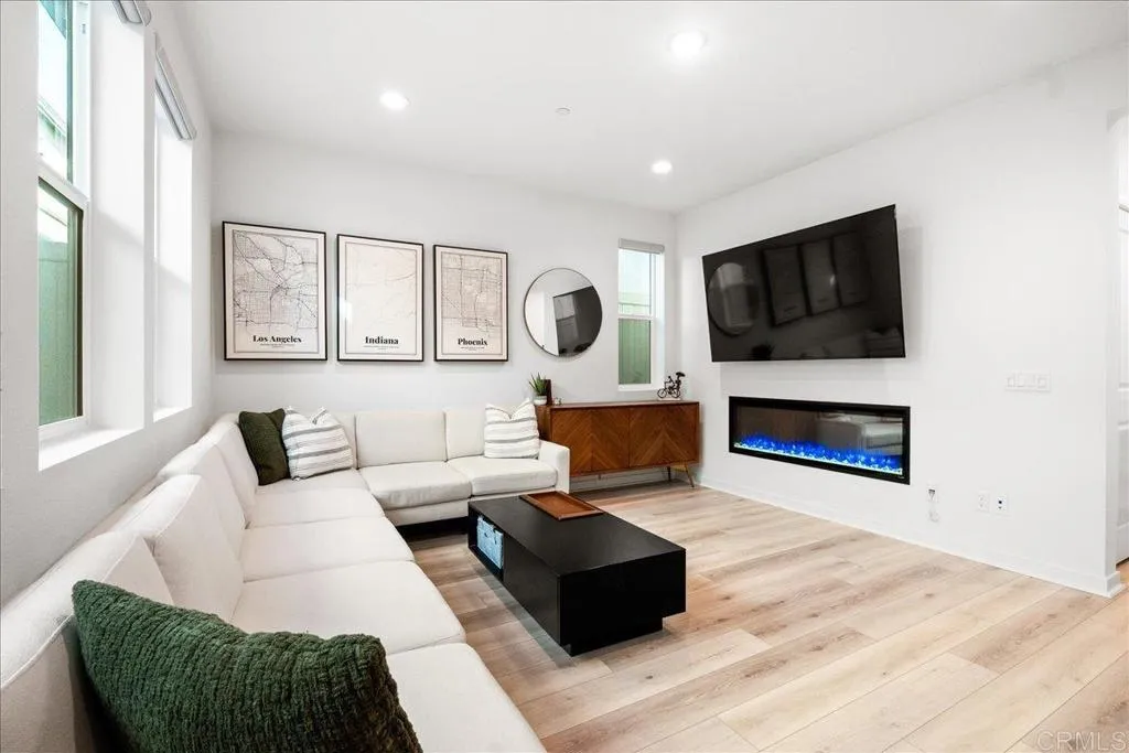 Seller will entertain Closing cost credit! -- This beautifully built fully detached condo lives just like a single family home. Boasting a number of high-end upgrades, owned solar, tankless water heater, dual zoned air conditioning and energy efficient vent fan - Perched in the exclusive Blossom enclave of Sommers Bend. Step inside to a light-filled, open-concept layout, luxury vinyl plank flooring, and a chefs dream kitchen featuring high end quartz countertops, full slab backsplash, custom soft closing cabinets, waterfall island, and a walk-in pantry. Even more upgrades include motorized blinds, high-end appliances, Belgard landscaping, and electrical upgrades. No expense sparedphotos can only begin to capture the craftsmanship and detail throughout. A sleek electric fireplace creates a cozy yet modern centerpiece in the living space. The layout is ideal for families or remote professionalswith a first-floor bedroom and full bath for guests, kids, or a home office. Upstairs offers a luxurious primary suite with an upgraded barn door, Jack-and-Jill bedrooms, and a spacious modern laundry room with built-in sink. This is a smart home with built-in WiFi access points for long range connectivity and Cat 6 outlets, Ring doorbell, keyless entry, and a wifi-enabled garage door. Great OUTDOOR SPACE Belgard pavers and a robust drainage system to maintain the integrity of the paver system and foundation. Key features include: EV Charging Custom cabinets and countertops WiFi Smart Blinds All floor areas upgraded with premium floor, tile or carpet. Sommers Bend Community amenities in