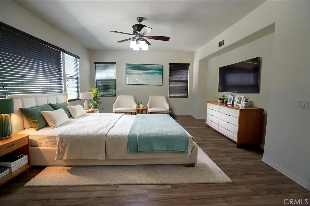 Welcome to this beautiful, freshly painted estate in the heart of Eastvale! This is a 6 bedroom, 4.5 bath property located in a quiet cul-de-sac. Upon entering the spacious home, you will be greeted by a bright and airy living room, a den that can be used as an office or a library, a formal dining room, a family room, and a grand kitchen. In addition, there are 2 bedrooms and a full bathroom on the first floor, as well as a powder room for the guests to use. Upstairs, you will find an impressive primary bedroom with an enormous bathroom, and a substantial walk in closet. Down the hallway, there is a junior suite, 2 more secondary bedrooms, another full bath, the laundry room, and a walk in linen closet. Outside, plenty of mature fruit trees adorn both the front and backyard. Furthermore, this house is conveniently located near many shopping centers, restaurants, schools, and parks. Riverwalk Park is just a short walking distance and the famous SilverLakes Equestrian and Sports Park is a just a short drive away. The potential to this property is limitless. Come check out this wonderful home today! (PLEASE NOTE: some of the interior photos have been digitally staged.)