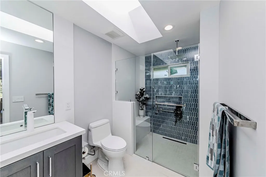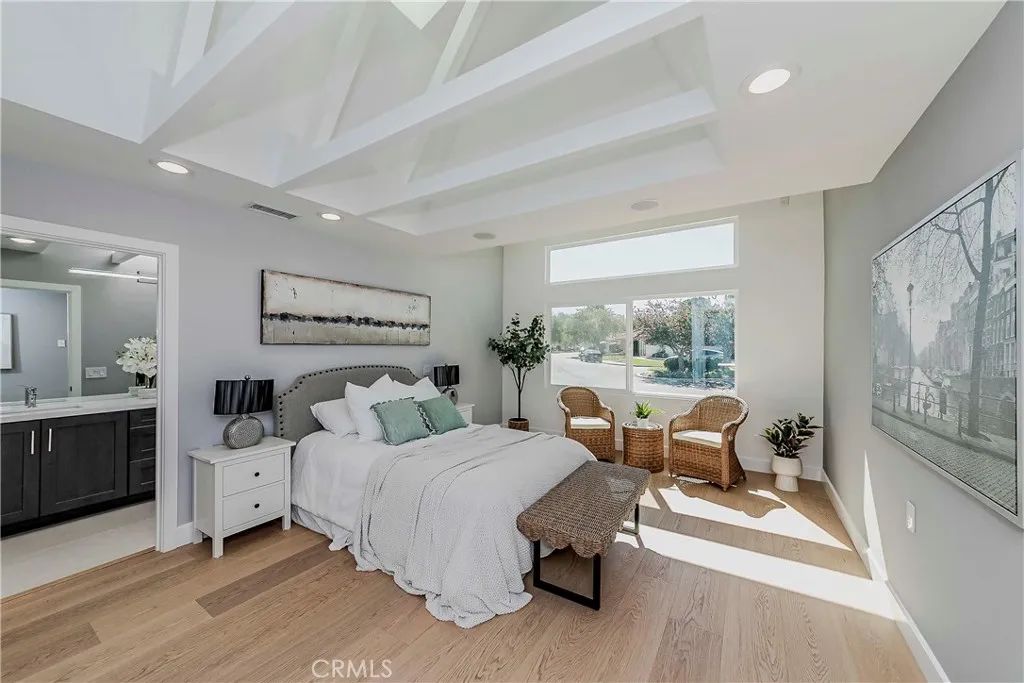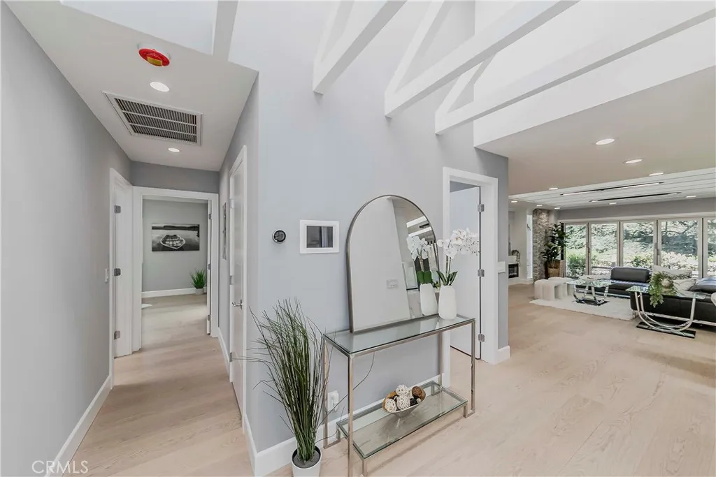 Experience this one-of-a-kind gem in the highly desirable 55+ community of Laguna Woods Village. Thoughtfully and extensively renovated, this exceptional custom home blends timeless design with modern livability. Situated on a quiet street, this detached residence offers over 2,200 sq. ft. of luxury living space, a spacious two-car garage, and elegant architectural details enhanced by high-end designer finishes. The expansive floor plan features 4 bedrooms and 3.5 baths, including three private bedroom suiteseach with its own bathroomfor ultimate comfort and convenience. The fourth bedroom offers flexible use as an office or den. At the heart of the home, the gourmet kitchen impresses with stainless steel appliances, a large quartz island, a garden window, abundant cabinetry, and a walk-in pantry. The open-concept living room is a showpiece, complete with a sleek LED fireplace, illuminated glass shelving, and an integrated sound system with ceiling speakers throughout. Natural light floods the interiors through remote-controlled skylights, Solatubes, and dramatic folding doors in the living room and bedrooms. These doors open to a private patio with breathtaking mountain viewsideal for seamless indoor-outdoor living. Additional highlights include a dedicated laundry area for everyday convenience. This rare offering is located within Laguna Woods Village, a premier guard-gated 55+ community featuring 27 holes of golf, 2 fitness centers, 7 clubhouses, 5 swimming pools, over 250 clubs, and just minutes from Laguna Beach. Dont miss the chance to own one of the Villages most pre