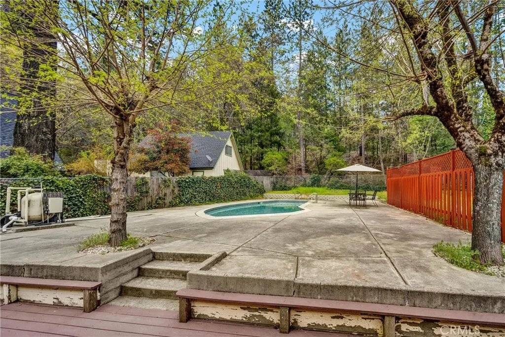 Remodeled home in the Cobb Estates community, nestled in a quiet neighborhood with a beautiful forest backdrop. Recently renovated, this 3-bed/2-bath home comes with a BRAND NEW ROOF (< 2 weeks old) and NEW gutters on both the main home & 2-car detached garage. Appointed in the heart of the home is a recently remodeled kitchen with corian countertops & subway tile backsplash, slate flooring, plus a 4-burner propane range. Laminate wood floors in the dining/living rooms & all bedrooms create a desirable cohesiveness throughout. The primary en suite includes a generously sized closet and primary bath has a large soaking tub set upon marble floors. Off the hallway are the washer/dryer hookups and guest bath with a shower/tub combo and tile floors. You will enjoy pulling up to the cheerful front yard and relaxing in your fully fenced backyard that includes a HEATED IN-GROUND POOL and uncovered patio. Located in the perfect location on Boggs Mountain near Pine Grove Resort, Hardester's Market, a variety of restaurants and only a minute drive from HWY 175. The Cobb Estates community is also a proud Nationally Recognized Participating Firewise Site. Schedule your tour today of 10005 Meadow Drive and fall in love with this sweet home.