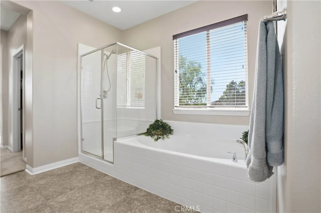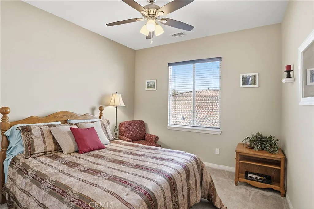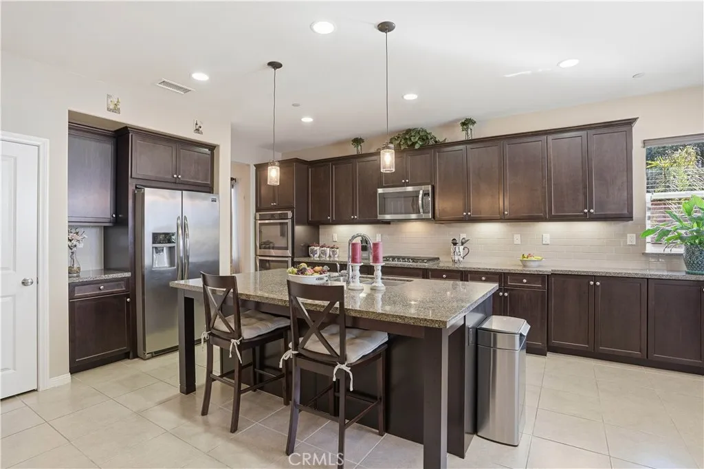 LOOKS AND FEELS LIKE A MODEL HOME!! MOVE IN READY!Welcome to this lovely home with a bright, open floor plan that's perfect for everyday living and entertaining. You'll love the spacious great room right off the kitchen, ideal for gatherings with family and friends. This spacious family room allows you to relax and enjoy the views of the beautiful landscaping and nearby hills and mountains. The gourmet kitchen features granite countertops, mocha cabinetry, extra cabinets, double oven, 5 burner cook top, large island with breakfast bar and a nice size pantry. Just off the kitchen is a formal dining area and from there you'll find a full downstairs bedroom and bathroom. Perfect for guests or a comfortable home office. As you head upstairs there are three additional bedrooms plus an open loft featuring extra recessed lighting. a perfect entertainment area and for a pool table. The convenient upstairs laundry room adds even more functionality. Outside, enjoy a private backyard with a block wall, large side yard, Alumawood patio cover with a ceiling fan ideal for relaxing or hosting gatherings. The oversized three car garage provides plenty of space for parking and storage with epoxy flooring and has a tankless water heater. So many HOA amenities include 2 pools, lake, splash park for kids, pickleball, tennis courts and much more! A must see! TURNKEY!