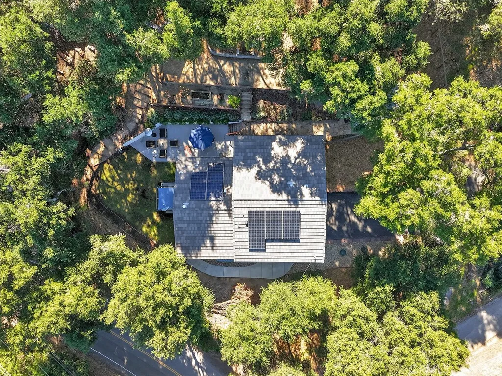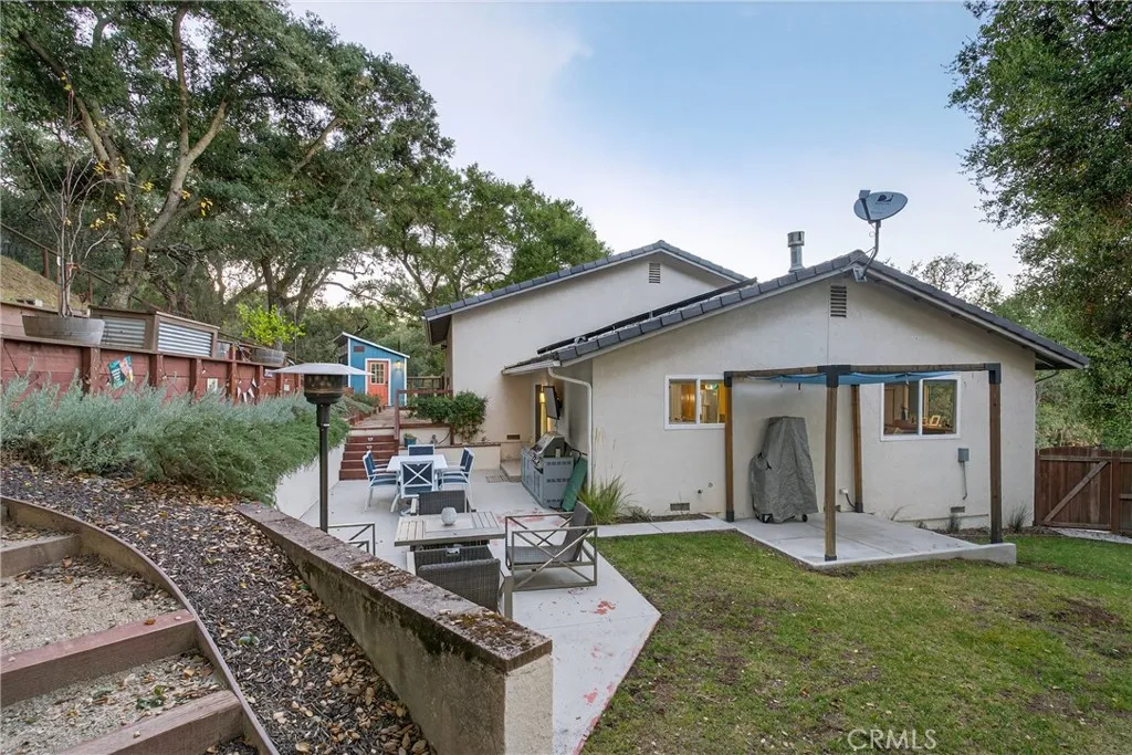 Tucked among the towering oaks on Atascaderos desirable west side, this beautifully updated home offers privacy, style, and the perfect blend of nature and modern living. Set on nearly half an acre on a corner lot, the property showcases a serene, treehouse-like setting with peaceful wooded views, thoughtfully designed outdoor spaces, and a detached officeideal for remote work or creative projects. Inside, the home invites you with espresso-stained bamboo flooring and an airy living room centered around a cozy gas fireplace. The kitchen showcases quartz countertops, travertine tile floors, stainless steel appliances, and a stylish sink and faucetcreating an elegant space for cooking and gathering. The split-level floor plan places the main living areas on the entry level, with just seven steps leading to the upper level where 3 bedrooms and 2 beautifully remodeled bathrooms await. The centrally located laundry area adds everyday convenience, while updated lighting, ceiling fans, and dual-pane windows bring comfort throughout. Energy-efficient power purchase agreement solar further enhances everyday living while helping to reduce utility costs. The primary suite features a walk-in closet and a remodeled en suite bath with quartz counters, dual sinks, and a custom tile shower with glass surround. The hall bath is equally refined with quartz countertops and an updated tile surround over the tub. Step outdoors to discover a backyard oasis that invites relaxation and entertaining. Enjoy a glass of Paso Wine on the concrete patio, unwind on the spacious paver terrace, or spend th