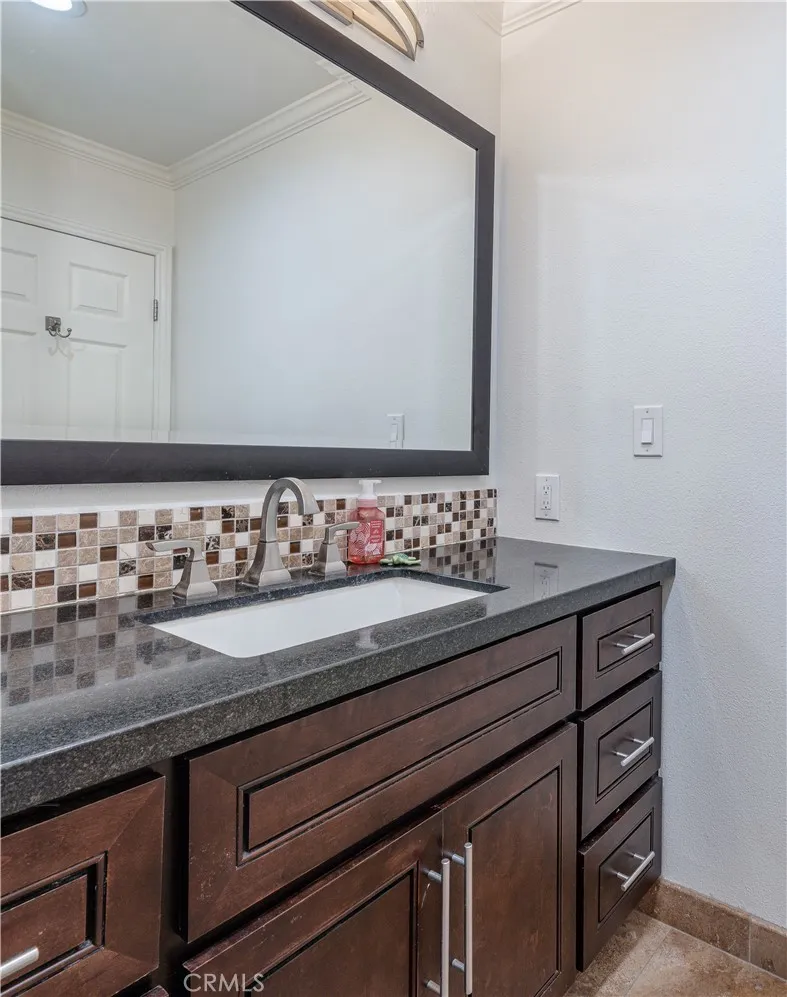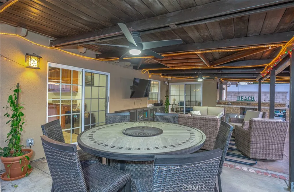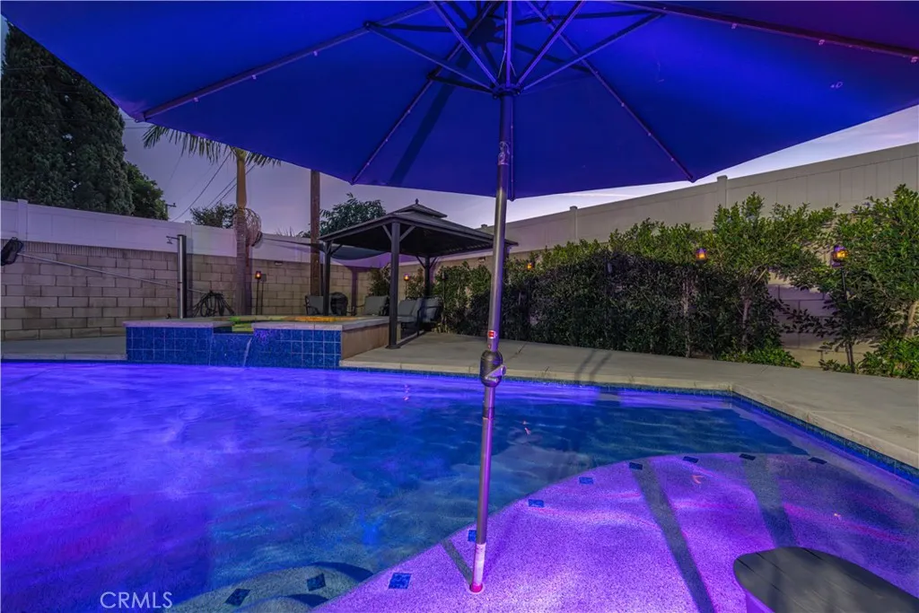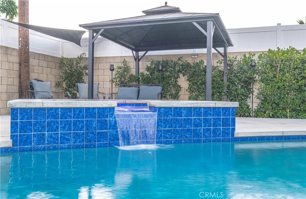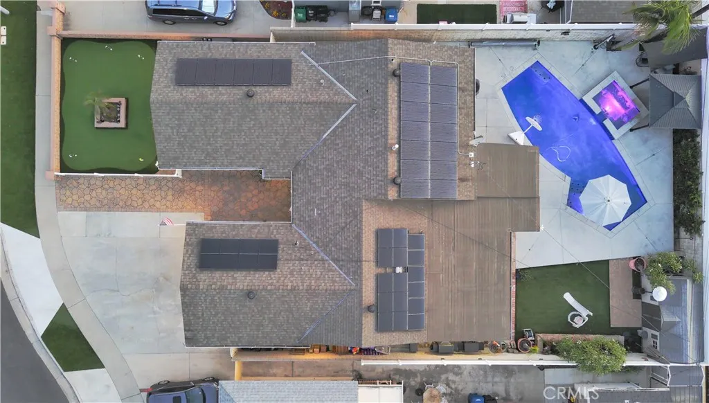 **Cul-de-Sac Location!** Welcome to this single-story home, boasting 3 well-appointed bedrooms and 3 stylish bathrooms. The heart of the home is a spacious kitchen, featuring exquisite custom accents and a convenient serve-over bar that seamlessly connects to the inviting family room, perfect for gatherings and shared moments. Retreat to the expansive primary suite that features a spa-like ensuite bathroom outfitted with custom finishes and a generous walk-in shower. Complementing this oasis is a thoughtfully designed walk-in closet, optimizing storage and space. The two additional bedrooms, paired with two well-appointed bathrooms, offer versatility for family living or guests. Step outside into your backyard paradise, highlighted by a sparkling pool, adorned with enchanting night lights, and a cascading water feature that flows from the built-in spa. The outdoor bar area is ideal for entertaining friends and family, and the spacious patio cover provides ample shade and comfort. Additional property improvements include: A complete interior repaint within the last 2 years, Paid-off solar panels, Bright shop lights installed in the garage, A 220V plug for electric vehicle charging, A widened driveway, A stylish vinyl fence topper around the exterior of the home, A new putting green in the front yard, Lush new turf along the sidewalk area, A motion sensor kitchen faucet for added efficiency, Recessed lighting throughout the house, A Nest floodlight and camera in the backyard, Motion sensor lights installed in both the front and backyard, GFCI outlets strategically added throu