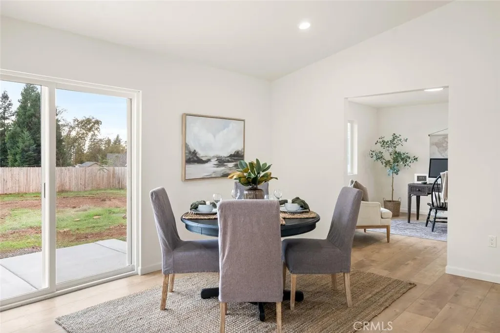 This brand new construction home located on the Eastside of town is situated on over a quarter acre, with 2 bedrooms, 2 bathrooms plus a den. The main living space has warm luxury vinyl plank flooring and a vaulted ceiling with recessed lighting that is open to the kitchen. The kitchen has a spacious island, bright white custom cabinets, a walk-in pantry, quartz granite counters, and stainless steel appliances. The master bedroom is roomy with a walk-in closet and an en suite bathroom with a dual sink vanity, tile floors, and a tile shower. There is a bedroom located near the master while the den is off the kitchen making this space perfect for an office or extra sitting room. The guest bathroom features a tub, tile floors, and large vanity. There is an indoor laundry room, ductless mini splits for energy efficiency, and an oversized owned solar system. Outside, you have plenty of space for activities in the fully fenced backyard and RV parking in the front. The street is very quiet and private so you can sit on the darling front porch and enjoy the peace and tranquility that this side of town has to offer! Come swoop this one up and call it home!
