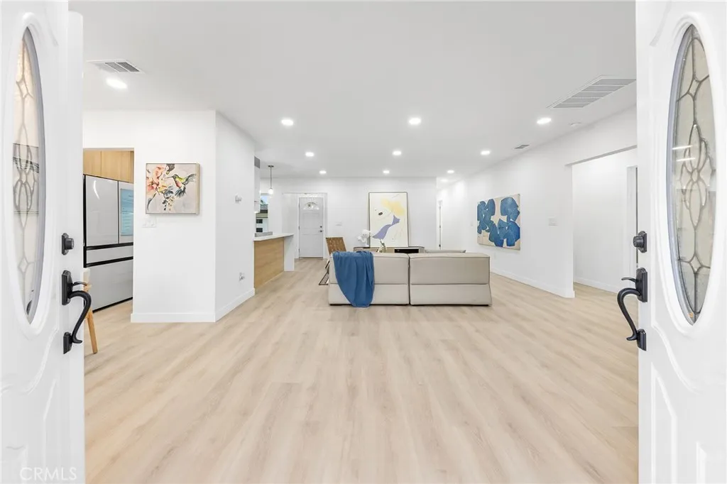 Welcome to this beautifully renovated single-story home located in a quiet and desirable Monrovia neighborhood. Thoughtfully updated with contemporary finishes and a bright, open layout, this residence offers turnkey living with style and comfort at every turn. Step inside to an inviting open-concept living space featuring new flooring, recessed lighting, and a seamless flow between the living room, dining area, and kitchen. The fully remodeled kitchen boasts sleek modern cabinetry, quartz countertops, stainless steel appliances, and a spacious peninsula perfect for casual dining and entertaining. This home offers Four well-appointed bedrooms and three stunning, fully updated bathrooms. Designer-quality bath features with a custom glass shower, gold fixtures, modern tile work, and a floating vanity. Every detail has been meticulously crafted to create a spa-like feel. The property sits on a generous lot with a beautifully maintained front yard, a long private driveway, and a detached two-car garageoffering incredible potential for additional storage or future ADU conversion (buyer to verify). The backyard and outdoor areas provide ample space for gatherings, gardening, or relaxing in the California sunshine. Located near parks, schools, shopping, dining, and easy freeway access, this home delivers both convenience and modern living in one of Monrovias most charming communities. Move-in ready and crafted with exceptional tastethis Monrovia gem is a rare opportunity you wont want to miss.