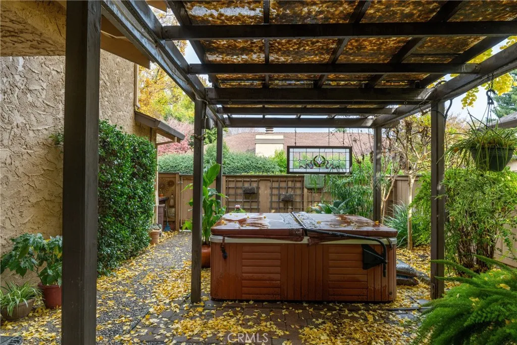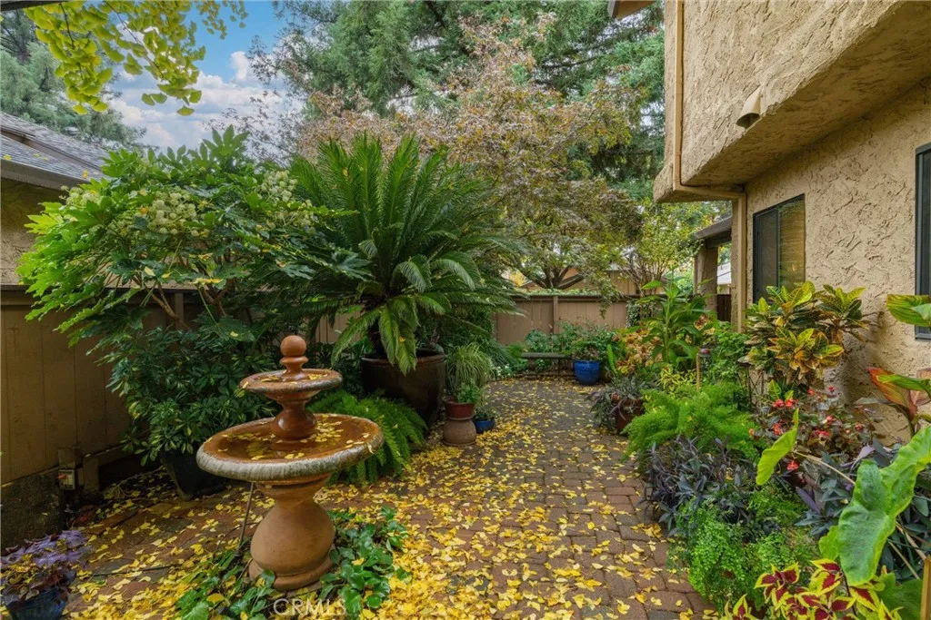 Wonderful, quiet Chico location in the lovely Woodcrest complex, where youre surrounded by mature, lush landscaping and beautiful redwoods. This charming condo offers 3 spacious bedrooms and 2.5 bathrooms, along with a welcoming layout that feels warm and inviting from the moment you step inside. The living room features high ceilings and a gorgeous brick fireplace that truly anchors the space. The kitchen is adorable and perfect for entertaining, offering a cozy dining nook plus an additional room that connects to the kitchenideal as a formal dining room, office, or comfortable sitting area. Upstairs are two generous guest bedrooms and a guest bathroom with new flooring. The large primary suite features a dual-sink vanity, lots closet space, and new flooring as well. One of the best highlights is the incredible, oversized fully gated and covered patioyour own private retreat. Relax in the hot tub or unwind while enjoying the peaceful, beautifully landscaped surroundings. Additional features include a two-car attached garage and access to the community pool, perfect for cooling off during Chicos hot summers. Close to shopping and everyday conveniences, this condo is ready to become a beautiful place to call home!