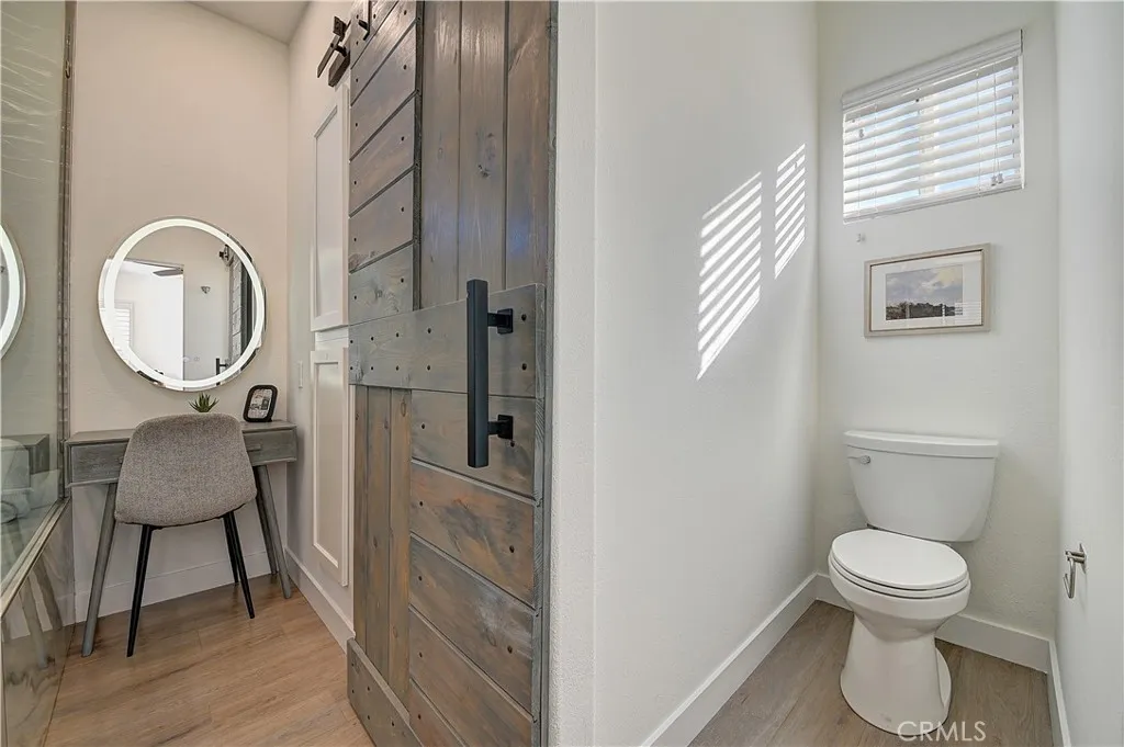 Welcome to this beautifully upgraded two story home that blends modern luxury with effortless California living. Situated on a generous lot with direct two-car garage access, the home showcases the results of a $150,000 remodel completed within the last three years. Inside, luxury vinyl flooring, fresh designer paint, crown molding, baseboards, and recessed LED lighting create a clean, contemporary look. Striking chandeliers highlight the dining area and stairwell, while modern fixtures add warmth throughout. The fully remodeled kitchen features Neolith soft-touch countertops, a designer backsplash, custom-stained cabinetry with LED lighting, upgraded hardware, an oversized stainless sink, high-end appliances, a breakfast bar, and a built-in bar accented with decorative tile. Updated bathrooms include contemporary vanities with soft close drawers, upgraded mirrors and fixtures, and stylish tile work. The primary suite offers two spacious closets with barn doors, dimmable lighting, and a stunning en suite with dual sinks, an expansive glass shower with dual heads and rain feature, a built-in bench, and a makeup station with illuminated mirror and Bluetooth speaker. The private backyard is an entertainers dream with a covered patio, bistro lighting, mounted TV, stained concrete dining areas, raised flower beds with sprinklers, artificial turf, a three-hole putting green, wood decking, and pavers. A charming front lawn enhances curb appeal. Additional comforts include central air and heat with Nest thermostat, plantation shutters, tall ceilings, a gas fireplace, upstairs laund