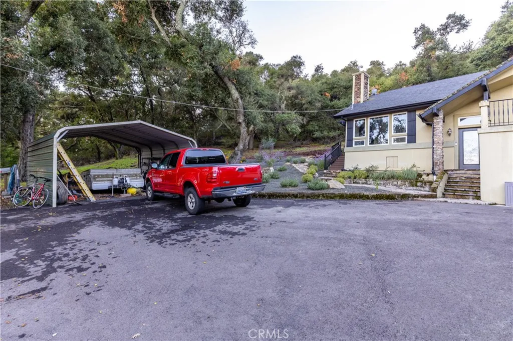 Spectacular location near the Atascadero Lake Park with privacy and views! Enjoy the peaceful setting of this 3 bedroom and 2 bathroom home with an open floor plan that offers abundant natural light with multiple patio doors that access the outdoor decks and patios. Your entry is greeted with hard wood flooring that flows into the living room. The high ceiling is balanced with an attractive wood burning fireplace and view windows. The kitchen has been updated and offers an eating bar, dining area, and opens to a large outdoor patio for enjoying the fantastic views while entertaining or relaxing. The primary bedroom has an on-suite bathroom and a private deck to the great outdoors. The third bedroom has a loft in addition to outdoor access to a separate entry.