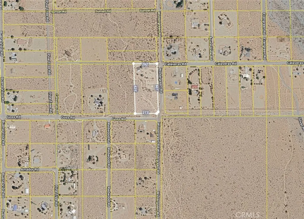 Excellent 4.18-acre land parcel in Pinon Hills! This is the perfect location to build your dream home in this popular area, and it's listed at an attractive price! This corner-lot property sits at the corner of Goss Road and Wintergreen Road, and it's nestled within an area of high-priced custom homes and equestrian estates. Water and electricity are available at the street, making this a prime buildable parcel. This property, with its corner-lot location, has frontage on 3 streets- Goss, Wintergreen, and Calaveras. This property is also believed to have some improvements made to it, including some graded areas, some fencing, and concrete pads. The property has a nice, centralized location within Pinon Hills, close to both Bear Valley Rd and Oasis Rd, as well as Hwy 138. There are custom homes all around this parcel. This parcel also has an elevated location in the foothills area of Pinon Hills, with great views of the valley to the north and scenic mountain views to the south. If you've been looking for the ideal place to build a custom home or install a mobile/modular home, you've found it. At an attractive price, you can secure an expansive piece of Pinon Hills and build your dream home to your exact specifications. The adjacent 4.76-acre parcel is also available at the same price from the same seller, allowing you to potentially obtain a massive 8.94-acre compound. Don't miss out on this opportunity!