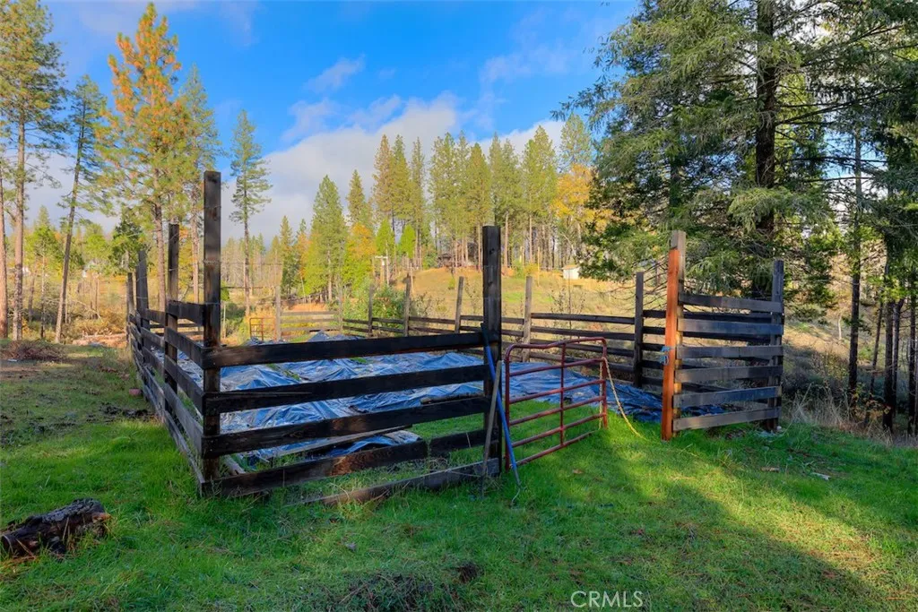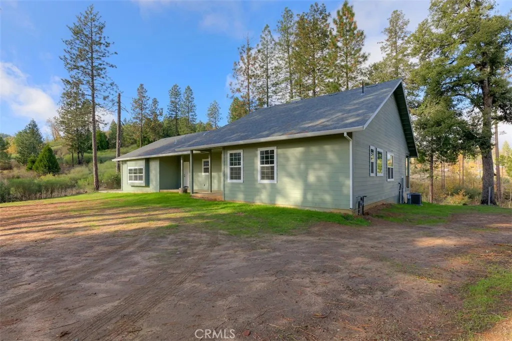 Brand-new custom cabin-style home on five private acres with sweeping panoramic views in every direction. This newly constructed property sits in a peaceful country setting and is bordered by thousands of acres of timberland, offering exceptional privacy and a rare connection to nature. A scenic drive around Concow Lake leads you to the home, creating a calm and inviting approach that reflects the tranquil lifestyle this property provides. Previously featured on Homestead Rescue, the home blends rustic character with modern comfort, ideal for anyone seeking both self-sufficiency and refined mountain living. Enjoy breathtaking sunrises from the front porch and glowing sunsets from the back while watching deer, turkeys, and other wildlife wander through the land. Inside, the home offers three bedrooms plus a den and two and a half bathrooms, including a spacious primary suite with a walk-in closet and a beautifully designed en suite. The shower features exquisite custom tile workrich in color and texturethat elevates the entire space. Throughout the interior youll find custom knotty hickory cabinets, spacious open floorplan, granite counters and kitchen island, stone tile flooring, black industrial cabin-style fixtures, a walk-in pantry, propane appliances, plumbing for an off-grid propane refrigerator, and a cozy wood-burning fireplace that anchors the living area. Built with six-inch exterior walls, the home provides added insulation and year-round efficiency. The property includes open horse-friendly areas with simple enclosuresideal for those with animalswhile still offer