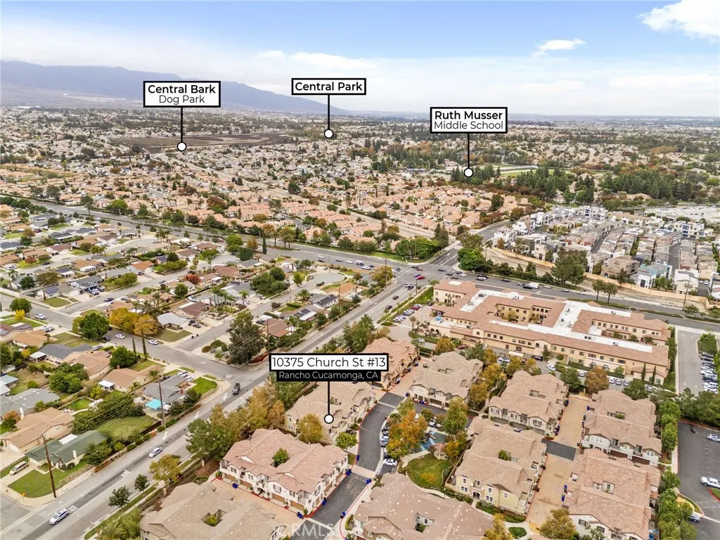 Welcome to your new home! Spacious two bedroom, two bath, almost 1,100 sqft of living space in the heart of Rancho Cucamonga ~ Large living room area with lots of natural light and high ceilings ~ Dining area with space for a dinette or rectangular dinner table ~ Light & bright kitchen with pantry, dishwasher, and stove with exhaust fan ~ Spacious secondary bedroom with modern features ~ Primary bedroom with walk-in closet, en suite full bathroom, and balcony off access ~ Washer/dryer closet in hallway ~ Second balcony off of dining area ~ Two-car detached garage w/roll-up door ~ Central air and heat ~ Dual pane windows throughout ~ Close to shopping, school, and freeways ~ A truly must see!