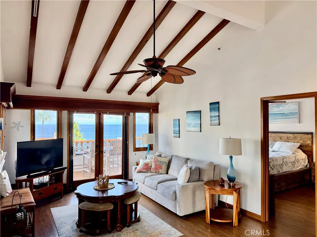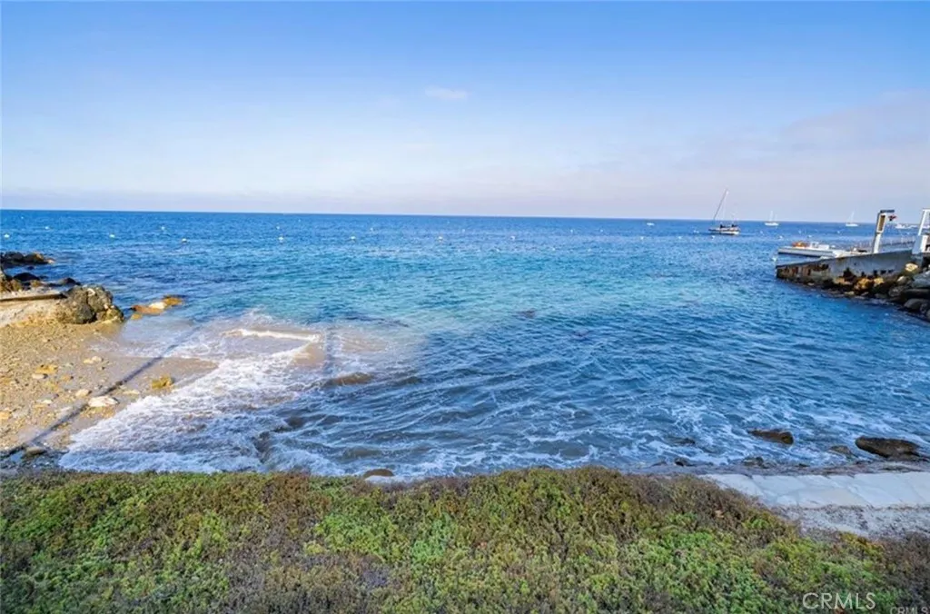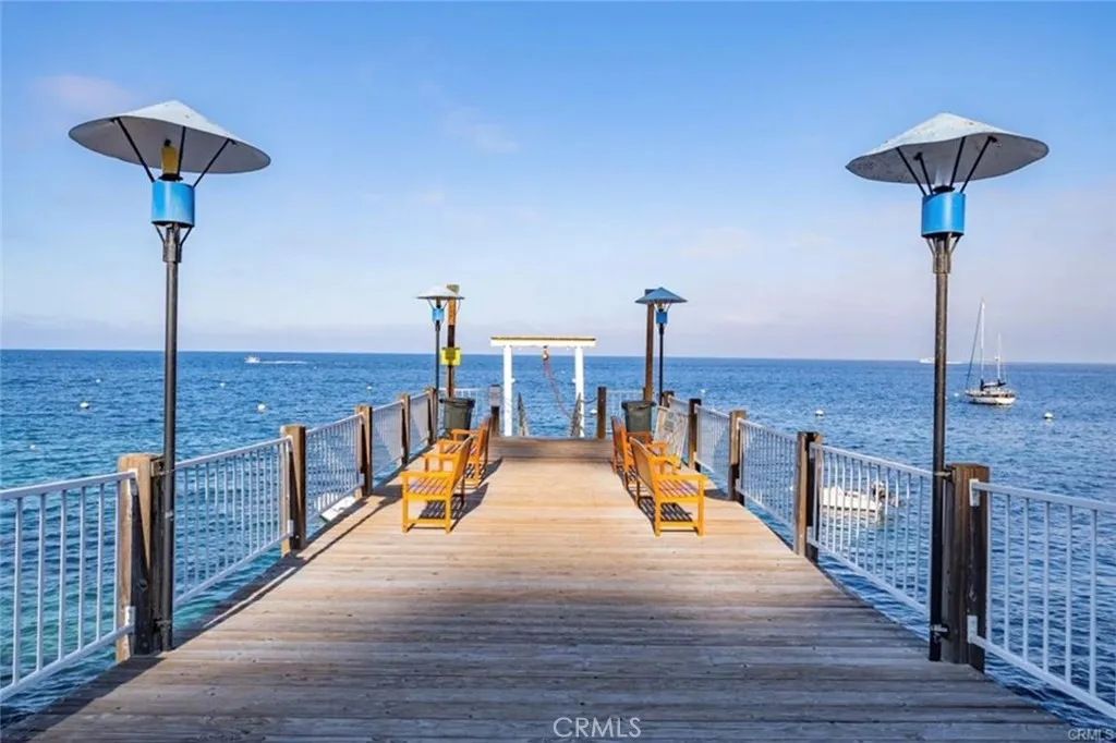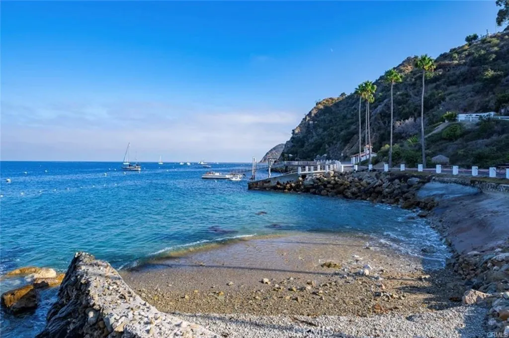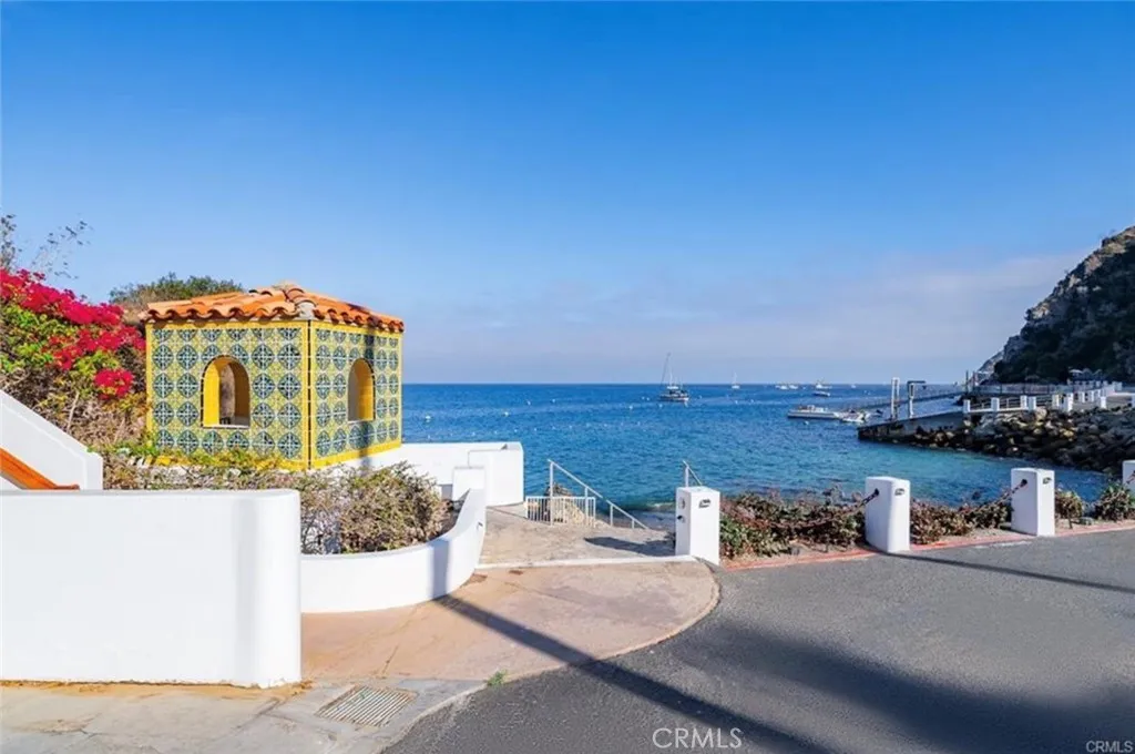 Welcome to Hamilton Cove the only guarded, gated community on Catalina Island. This immaculate villa checks all three of the big-ticket boxes buyers want most: a stunning ocean view, a low number of steps, and the coveted short-term vacation rental licensea rare asset now that the City of Avalon has capped new permits. Just 15 easy steps from Playa Azul, this corner end-unit sits close to the ocean and offers lovely water views from the living room, bedroom, and two private balconies. With no unit above and extra windows on the side, the villa enjoys exceptional natural light and a sense of privacy more reminiscent of a single-family home. The property is offered fully furnished and includes a street-legal Avalon-approved golf cart. The assigned parking spaceanother rarityis only steps from the front door rather than several blocks away. Beautifully remodeled, the interior features quartz countertops, bar seating, stainless steel appliances, an oversized sink with upgraded hardware, and stylish flooring throughout. A granite fireplace anchors the living room, and dramatic vaulted ceilings elevate every room, including the kitchen, living room, bedroom, and bath. Additional conveniences include full-size interior laundry, a bedroom closet with built-in organizers, and attic storage accessible through a hidden hatch. The villa overlooks a charming grassy croquet lawn rather than a neighboring building, giving it open views, abundant natural light, and a uniquely airy feel. Wake up to breathtaking sunrises, sip morning coffee while watching for passing dolphin pods, and enjoy