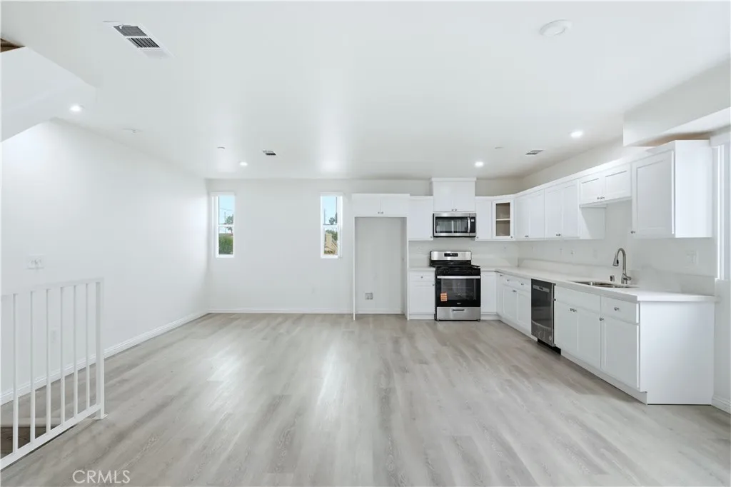 Discover a newly built TIC townhome located in a central Los Angeles neighborhood, offering modern design and functional living throughout. This residence is part of a four-home community and provides thoughtful features suited for todays lifestyle. The floor plan includes 4 bedrooms and 4.5 bathrooms, with a first-floor en-suite bedroom that can serve as a home office, guest space, or additional living arrangement. The home offers approximately 1,930 sq ft of living area. This property has never been occupied, offering a fresh and unused living environment. The main level features an open living, dining, and kitchen layout with abundant natural light. The kitchen provides generous workspace and cabinetry, designed to support both everyday use and larger gatherings. Each bedroom includes an en-suite bathroom and ample closet space. Additional features include an in-unit laundry area, dual-pane windows, 9+ ft ceilings, LED recessed lighting, central HVAC with smart thermostat, and solar-ready electrical infrastructure. Parking accommodates two vehicles with dedicated spaces. Conveniently located within close proximity to major Los Angeles destinations, including DTLA, USC, BMO Stadium, SoFi Stadium, Intuit Dome, LAX, SpaceX, and other employment centers, offering accessibility to a wide range of work and lifestyle amenities.