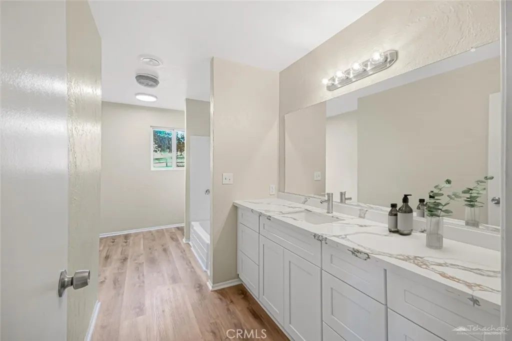 New interior and exterior paint give this Stallion Springs home a fresh, clean look right from the start, setting the tone for a fully renovated interior. The kitchen is completely newbrand-new cabinets, new countertops, all-new stainless steel appliances, a new sink, and a new faucetdelivering a true move-in-ready space. Brand-new plank flooring spans the main areas, while new carpet adds comfort to the bedrooms. Updated plumbing fixtures and new light fixtures finish the remodel. The layout includes a primary suite downstairs, a secondary bedroom downstairs, and a loft/bedroom upstairs with its own balcony that captures the kind of million-dollar views Stallion Springs is famous for. A formal dining area and a comfortable living area make the home easy to enjoy. Outside, you'll find wrap-around decking with sweeping views in every direction, a fenced property, a barn, an oversized 2-car garage, and a cleaned-up lot ready for your plans. Located in beautiful, highly desirable Stallion Springs, this home sits in one of the most sought-after spots in the entire Tehachapi area. Come see this rare offering before someone else does.