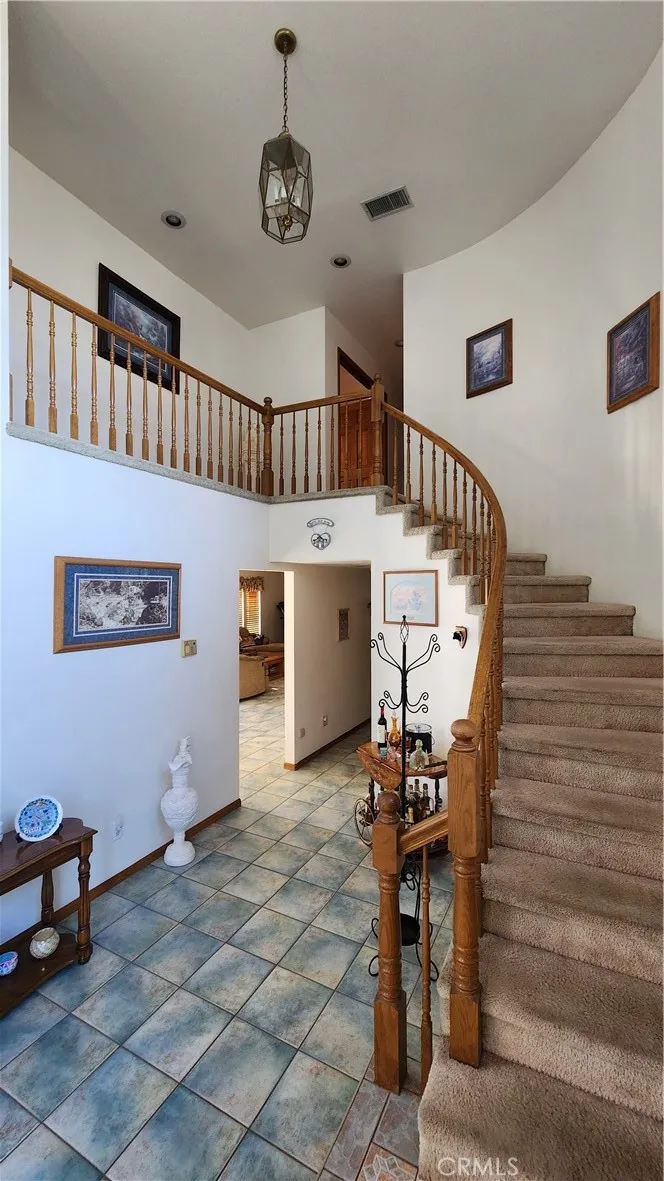 Looking for a big home with a big lot a Swimming Pool and a spectacular view ??? Congratulations you found it!!! But there is much more... What a great location with over an acre of land and the home boasts about 3,437 sq.ft. of living space. Low Tax and no HOA. Double door main entry as you walk into the welcoming foyer. Living room with 20 foot high ceilings and oversized window that allows plenty of natural lighting. This home has 4 Bedroom with the possibility of converting to 7 rooms or more. One bedroom and full bathroom are located downstairs. There is a huge bonus room/game room big enough to convert to 2 additional bedrooms. The primary bedroom is also very spacious and has a retreat area. Primary bathroom with jetted jacuzzi tub to relax. There is a mixture of tile floors and carpet throughout the home. Elegant circular staircase with wooden railing. Two Fireplaces, one in the Living Room and the other in the Family Room. Very spacious kitchen with lots of cabinets and plenty of counter space. Formal dining room. Big laundry room downstairs with storage cabinets. 3 Car Garage side by side with automatic openers. Over 1 Acre of land with dozens of mature and producing fruit and citrus trees; Oranges, Tangerines, Lemons, Figs, and more. Plenty of room for RV's, boats trucks, trailers and any other toys you may have. There is a large permitted carport for up to 8 cars; currently being used as a shop & storage area. Beautiful views of the valley, Lake Perris Dam, Big Bear and more. Very desirable location in a rural setting, yet close to schools, shopping centers, med