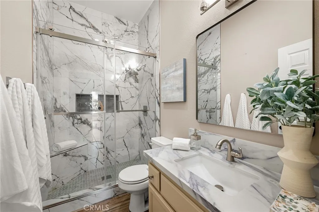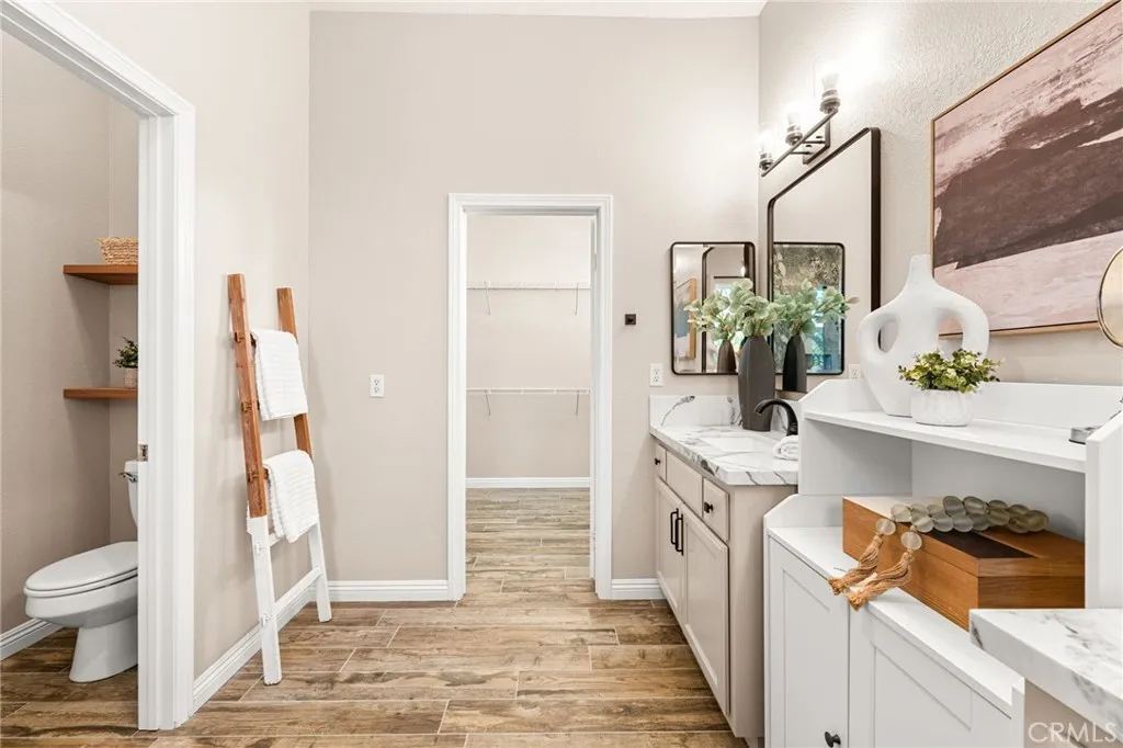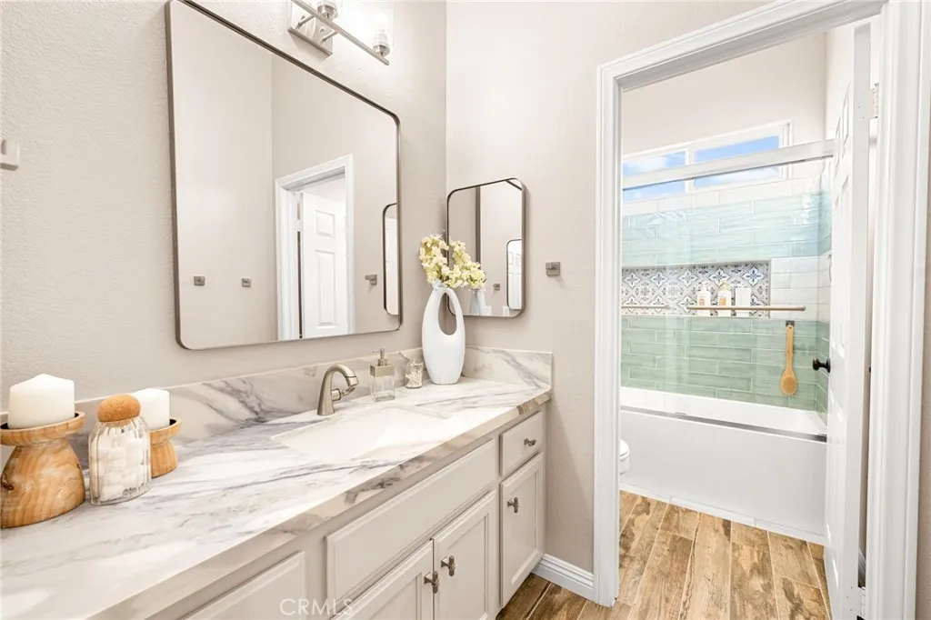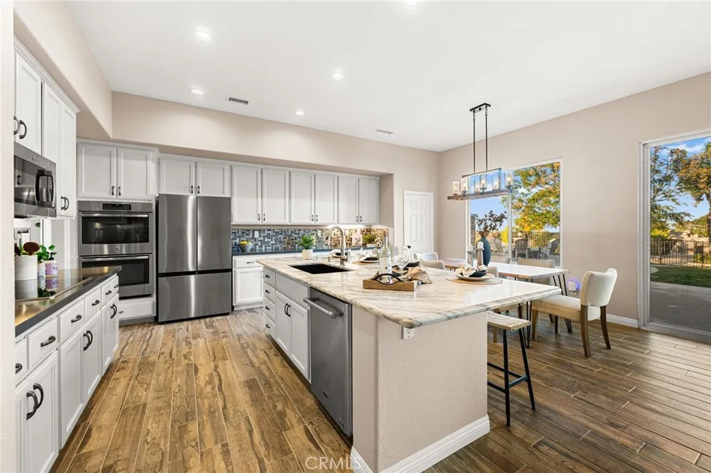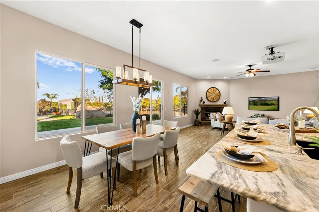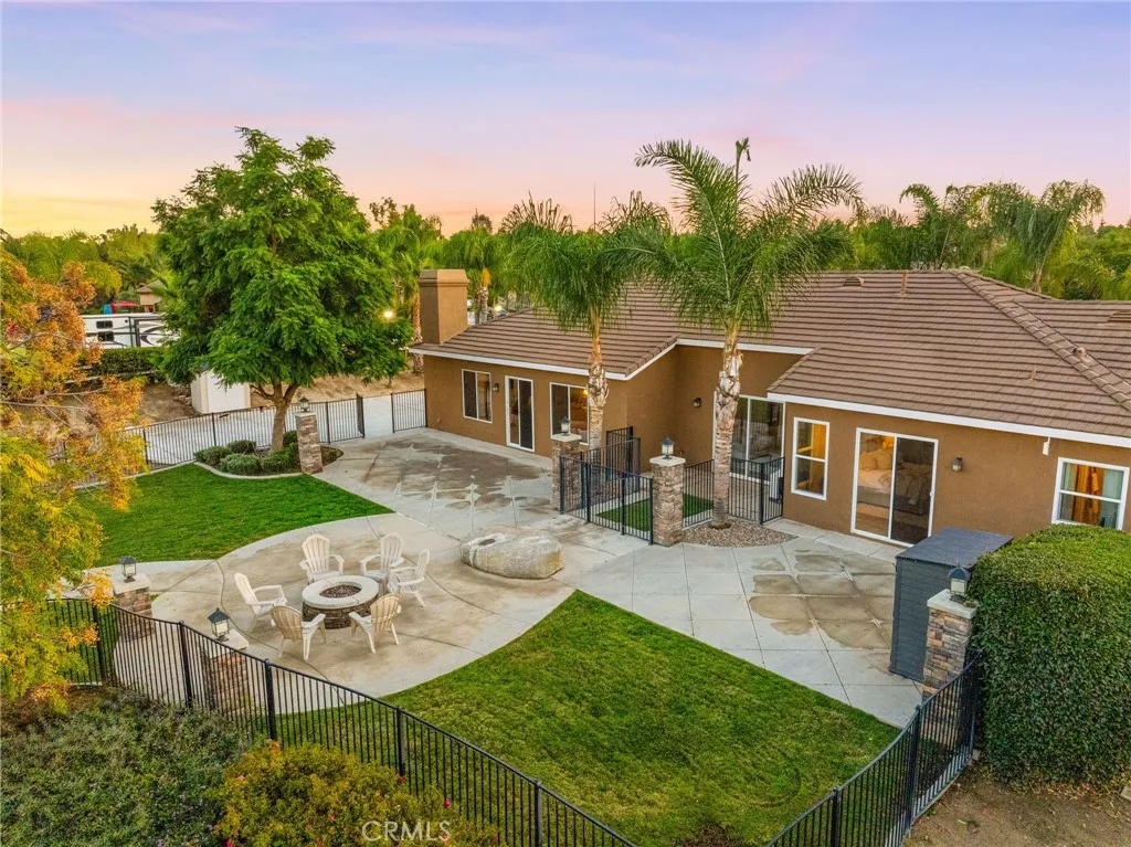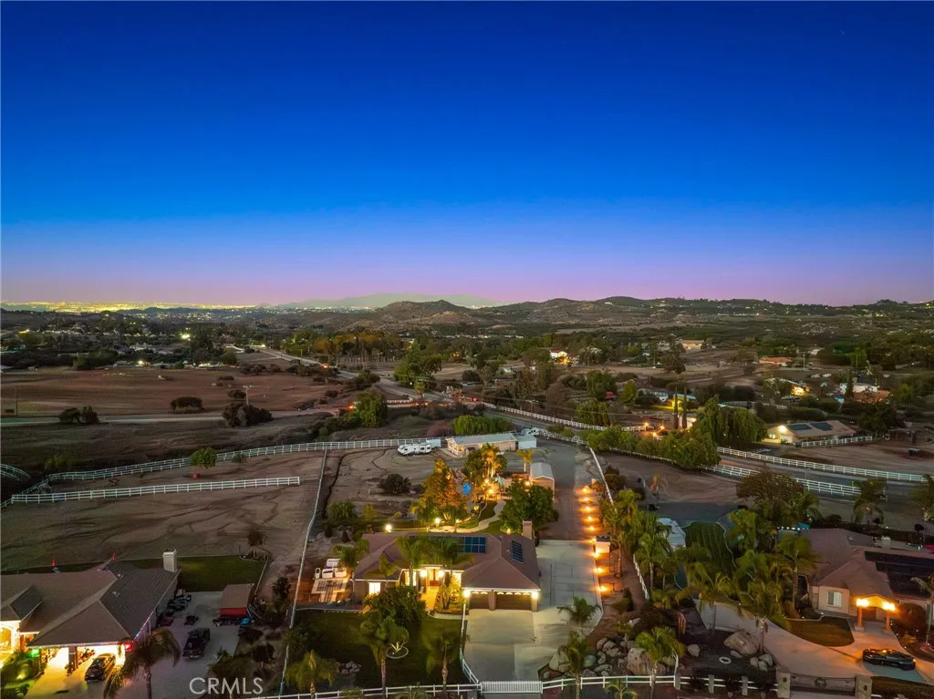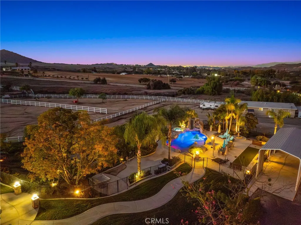 Experience unmatched privacy, sweeping panoramic views, and true resort-style living in the highly desirable Lake Mathews / Gavilan Hills region. Set on nearly 2.5 acres, this stunning estate features a beautifully upgraded main home, a full second dwelling, paid solar, and exceptional outdoor amenities ideal for buyers seeking modern luxury, space, and a peaceful acreage setting with endless possibilities. The property is equestrian-friendly with direct access to nearby horse trails, making it perfect for those seeking land, riding capacity, and rural living without giving up convenience. The main home offers approximately 3,140 sq ft with 5 bedrooms, 3 bathrooms, a spacious 3-car garage, high ceilings, and an open floor plan with generously sized rooms. Interior upgrades include modern tile flooring, brand-new carpet, fresh interior paint, a fully renovated kitchen, and beautifully updated bathrooms. Step outside to your own private resort. The expansive backyard features a spectacular saltwater pool with a grotto slide, baja shelf/beach entry, two water features, and a spa, all designed to maximize relaxation, entertainment, and total seclusion. The property includes extensive parking and storage including a 40x14 covered RV structure with 50-amp & 30-amp power, water, and an on-site sewer clean-out ideal for RVs, toys, trailers, and off-road vehicles. A custom-timed LED lighting system illuminates a large portion of the grounds, creating a dramatic nighttime atmosphere and offering ready-made lighting for future additions such as a pickleball or basketball court, than