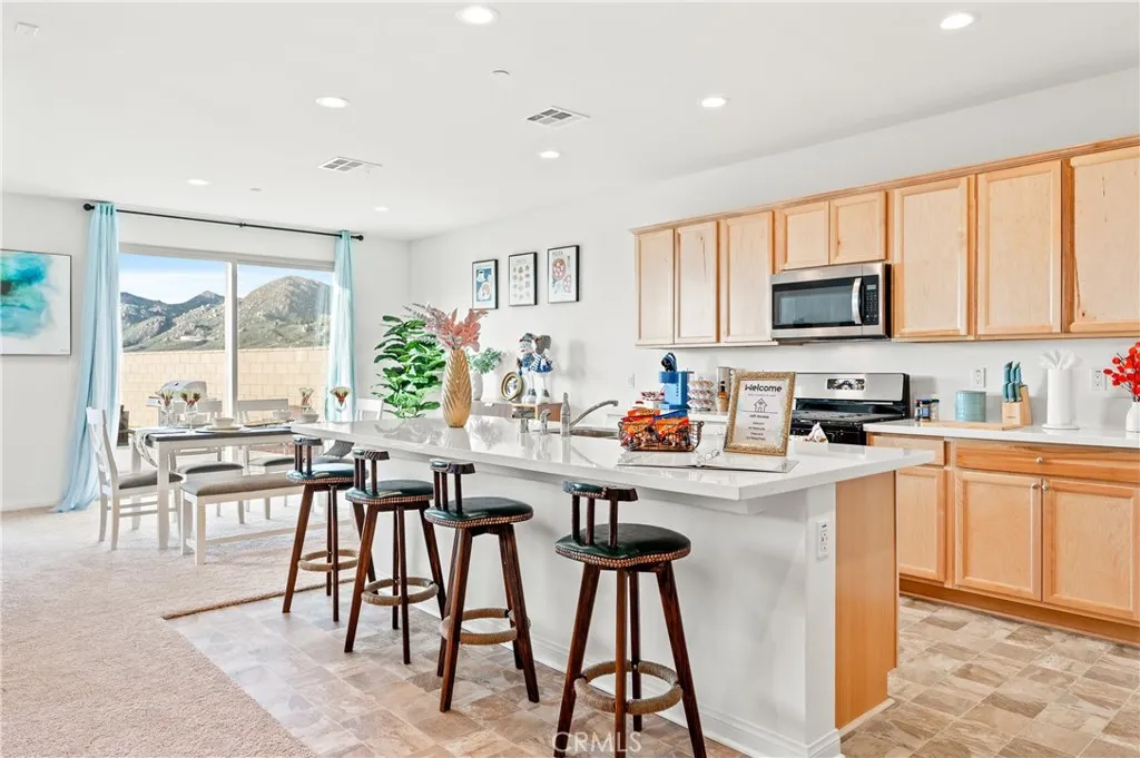 Come take a look at this gorgeous house. This stunning FULLY FURNISHED home comes with astonishing views of the mountain and SOLAR PANELS that help you save on the electric bill. This 2025 built home features 5 Bedrooms and 3 Bathrooms and is only 4 miles away from UCR. First floor has one bedroom with its own private bathroom and carpet throughout the whole bottom floor. Open floor plan includes stainless steel appliances, oversized central island, and large glass doors that lead to the beautiful newly remodeled backyard. Master bedroom includes large walk-in closet with laundry room just steps away from the other rooms. Don't miss this opportunity!